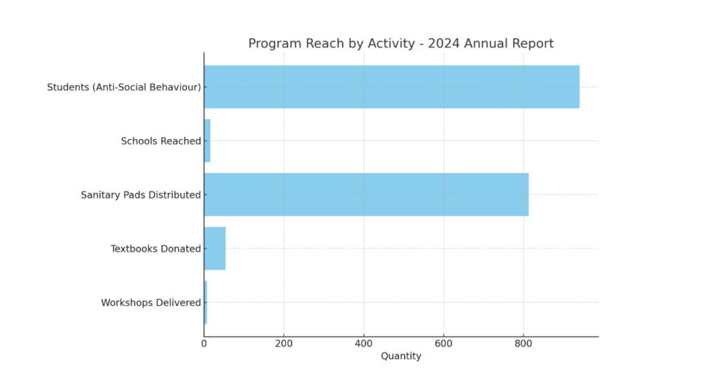 PADS Education: Before our PADS programme, many girls didn’t attend school during their periods. After distributing over 800 packs of sanitary pads and holding open discussions on menstrual health, attendance rose by more than 50%.